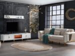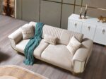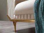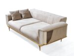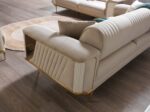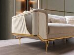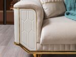 İstanbul Koltuk Seti, ayaklarında metal gold, detaylarında ise MDF üzeri CNC freze ve lake boya çalışması, takıma benzersiz bir görsel zenginlik kazandırır. Konforlu oturumlar için 30 DNS reflex sünger kullanılmıştır, bu sayede deformasyon en aza indirgenmiştir. Ayrıca, koltuklarda silinebilir kumaş tercih edilmiştir, temizlik ve bakım kolaylığı sağlar. Üçlü koltukların sırt bölümü dönerek yatak oluşturulabilir, sırtın arkasındaki bölüm yan sehpa olarak kullanılabilir. Yüksek kaliteli malzemelerin kullanımı ve özenli üretim süreciyle tasarlanmıştır, bu da dayanıklılığı ve uzun ömürlülüğü garanti eder.
