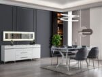 Melis Konsol, parlak beyaz renk suntalam malzeme ve MDF üzerine lake boya ve pasta cila çalışması, takıma benzersiz bir görsel zenginlik kazandırır. Konsolda kullanılan metal krom kulplar ve metal krom ayaklar takıma tam bir uyum sağlar ve mükemmel bir denge yaratır. Üstün kalite ve dayanıklılık standartlarına uygun olarak üretilmiştir. Özel yavaşlatıcılı teleskopik raylar ile donatılmış çekmeceler, sessiz ve kolay kullanım sunar.