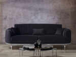 Prestij Üçlü Koltuk, iskeleti komple fırınlanmış gürgen ağacı ve kasalarda MDF olarak üretilmiş olup ayaklarda metal kullanılarak şık ve dayanıklı bir tasarım sizlere sunulmuştur. Oturumlarda 32 dansite sünger kullanıldığından deformasyon riski en aza indirilmiştir. Silinebilir kumaş tercih edilmiş olup her renk ve desende üretim yapılabilmektedir. 3 lü koltukların sırt bölümü dönerek yatak oluşturulabilir ve sırt arka bölümü yan sehpa olarak kullanılabilir. Üstün kalite ve dayanıklılık standartlarına uygun olarak üretilmiştir.