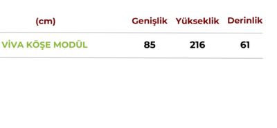 Viva Köşe Modül, Ürünümüz söğüt renk suntalam’dem üretilmiştir. Dolap kapaklarında dekoratif, ayna yansıtmalı ve sensörlü ışığı devreye girdiğinde içerisini gösteren bronz reflekte, kırılmaz temperli cam kullanılmıştır. Kapak menteşeleri yavaşlatıcılıdır.Üstün kaliteli ve dayanıklılık standartlarına uygun olarak üretilmiştir.