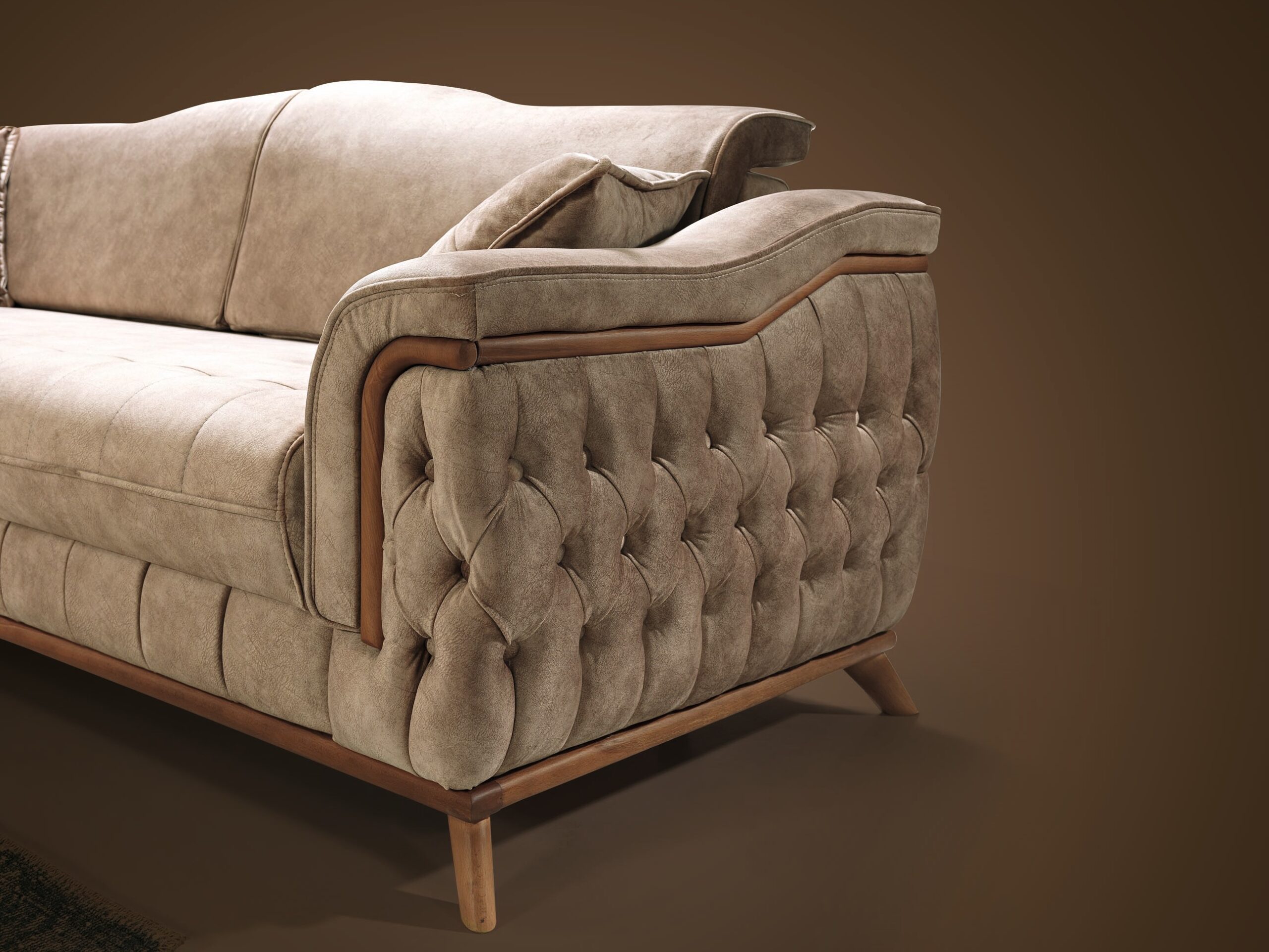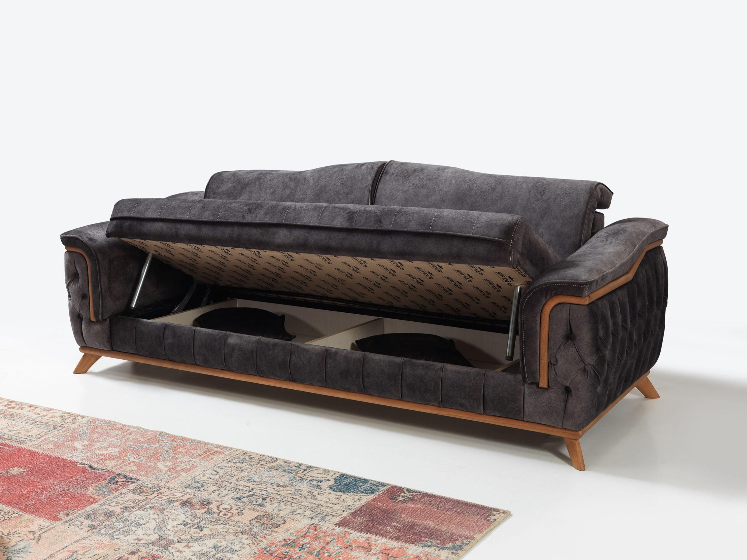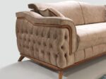 Zerafet Üçlü Koltuk, iskeleti komple fırınlanmış gürgen ağacından üretilmiş, oturum ve yaslanma alanlarında 28 dansite sünger kullanılmıştır. Böylece uzun süreli kullanımda deformasyon riski minimuma indirilmiştir. Ayrıca, ithal nova silinebilir kumaş tercihi ile kolay temizlik sağlanabilir ve isteğe bağlı olarak farklı renk ve desen seçenekleri sunulmaktadır. Üçlü koltuklar, duvara sıfır mekanizmalı olup hareket ettirmeden yatak ve sandık opsiyonu kullanılabilmektedir.